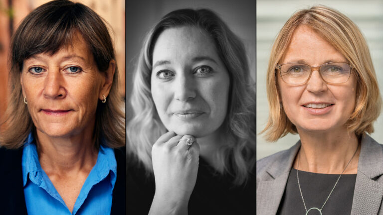 Silvia Ernhagen, Svensk biblioteksförening, Joanna Holden, ordförande i Föreningen för regional biblioteksverksamhet och riksbibliotekarie Karin Grönvall riktiar alla kritik till förslagen som presenteras i utredningen om ny samverkansmodell.