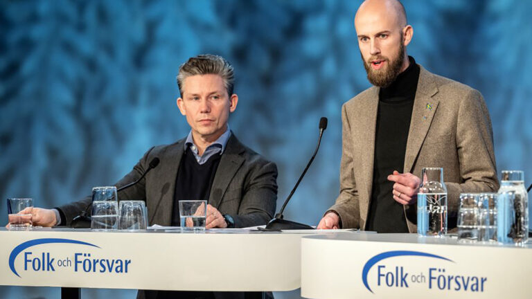 På Folk och försvar i Sälen meddelade regeringen att civilplikten återinförs. Försvarsminister Pål Jonson och Carl-Oskar Bohlin, minister för civilt försvar.